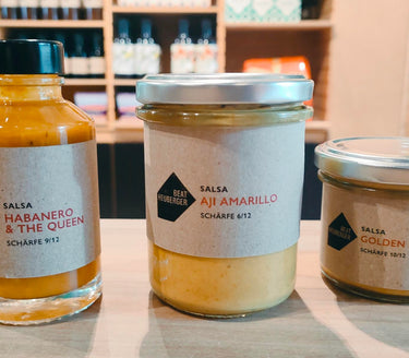 Die Queen ist das Alter Ego der Orange & Pineapple - dabei etwas milder & frischer. Die Salsa Amarillo ist nochmals leicht cremiger geworden. Und die Golden Habanero ist neu mit Rüebli & Quitten geköchelt - und war noch nie so gut. Hier als Bundle sparst Du 10 Stutz.